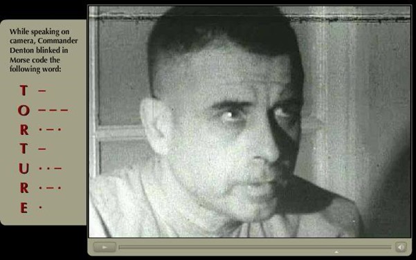 أحد أشهر الاستخدامات كان خلال الحرب الأمريكية الفيتنامية حين سقط أدميرال أمريكي يدعى "جيرميا دينتون" في يد الفيتناميين مستخدمين التعذيب ، طلب من الجنرال أن يدلي برسائل دعائية عبر الإعلام ضد الجيش الأمريكي وهو ما قام به بالفعل غير أنه استخدم الرمش بعينيه كوسيلة لإرسال رسالة بشفرة مورس كان نصها كلمة "TORTURE" وتعني تعذيب ، وتم إنقاذه بفضل شفرة مورس.